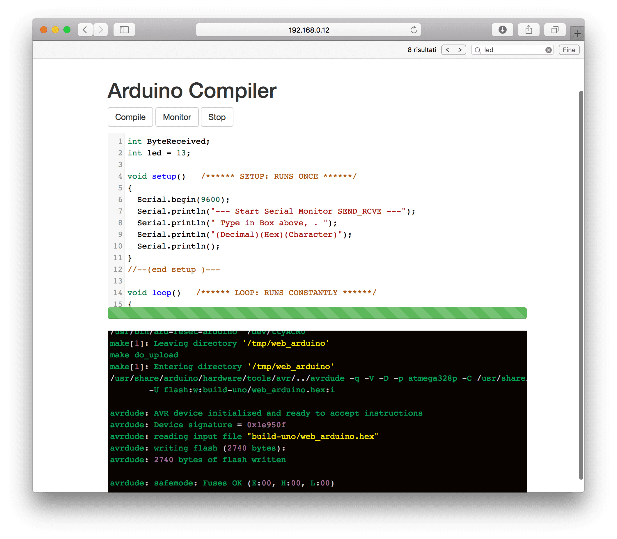 Il progetto doveva permettere di programmare Arduino e di accedere al monitor seriale (esattamente come fa l'IDE Arduino ufficiale).