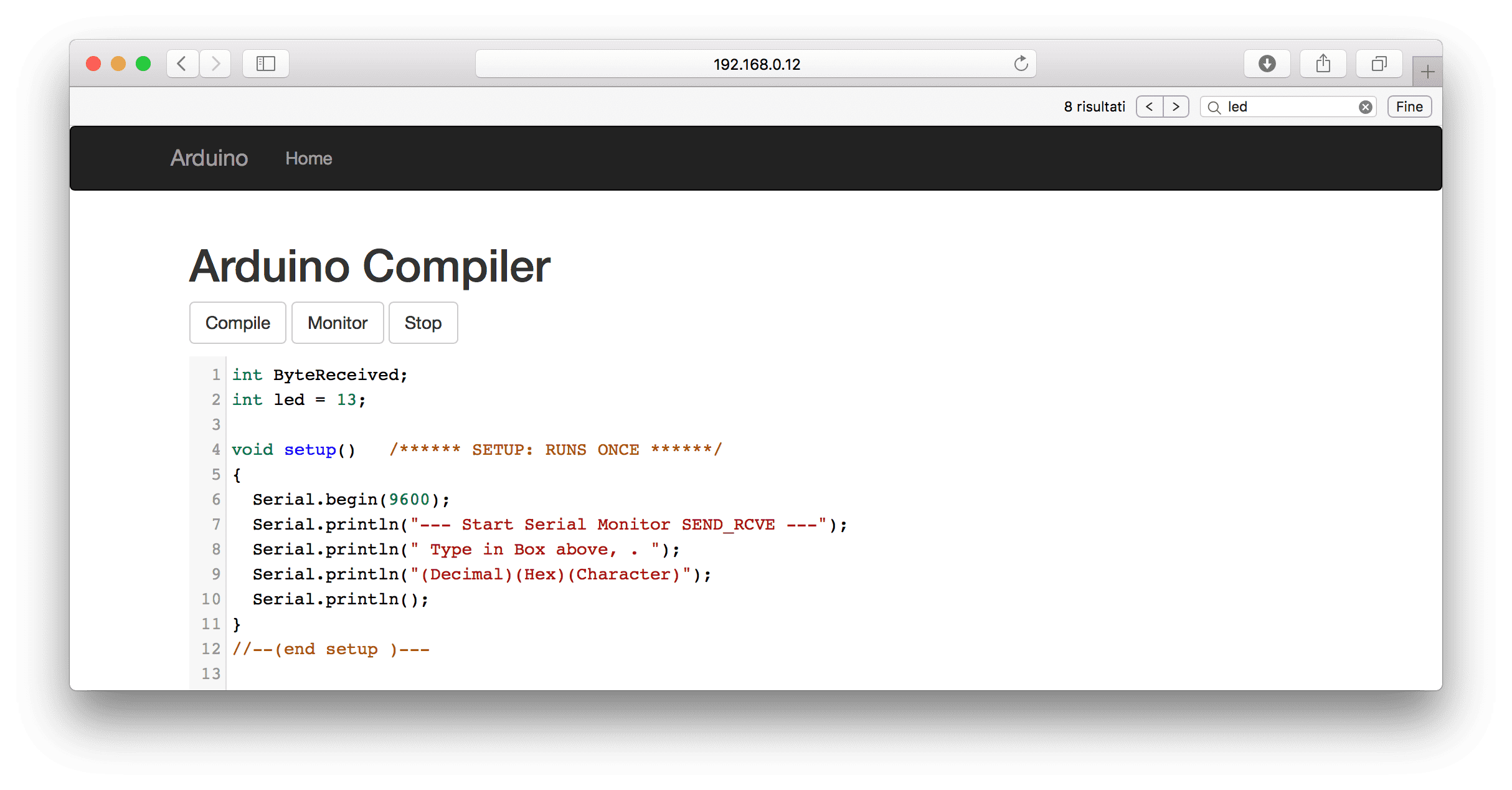 L'idea di base era quella di sviluppare un semplice IDE web per Arduino, che mi permettesse di sviluppare codice su un Arduino direttamente connesso ad un Raspberry Pi (ormai sapete che utilizzo tantissimo entrambi questi Hardware), ma senza la scomodità di dover utilizzare direttamente l'interfaccia grafica del Raspberry Pi per programmare.