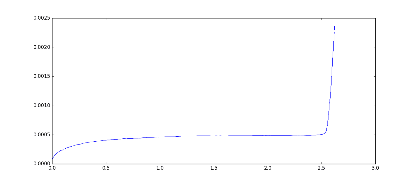 from led import characterize_ledv, i = characterize_led()plot(v, i)