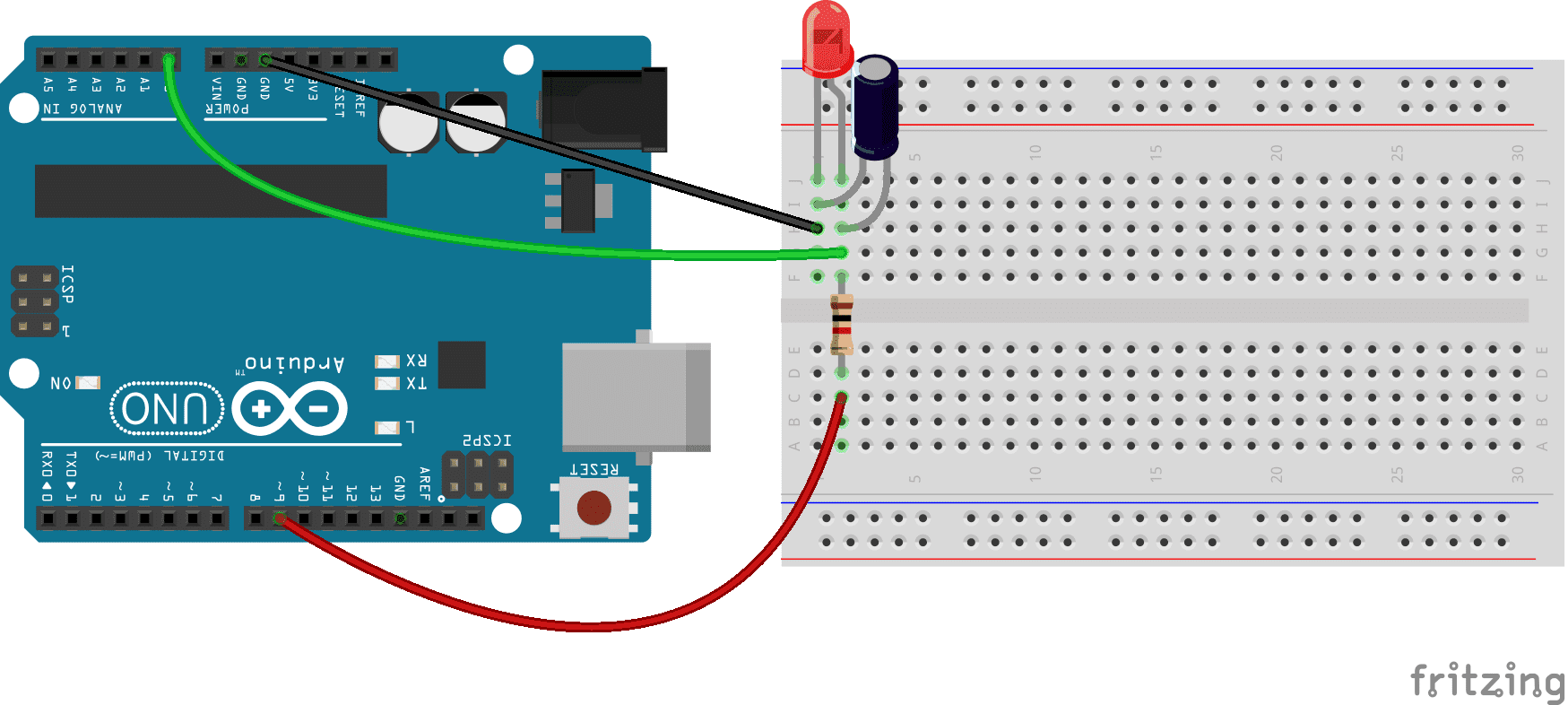 Usiamo come input il Pin6 di Arduino, e come lettura il Pin A0, come indicato in figura.