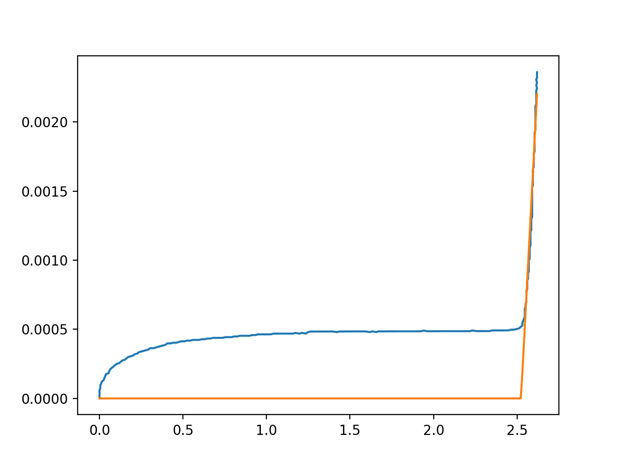 Dato che i due grafici si sovrappongono perfettamente nella parte di crescita, possiamo salvare il valore ottenuto. Nel mio caso, ho visurato .