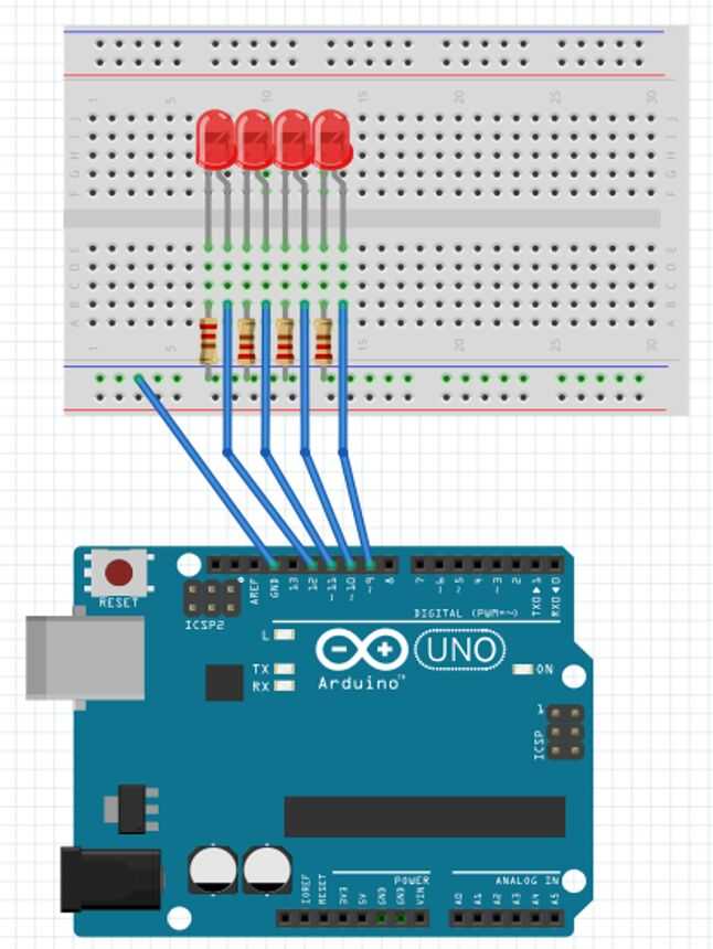 Lo schema per collegare tutte le componenti ad Arduino è il seguente: