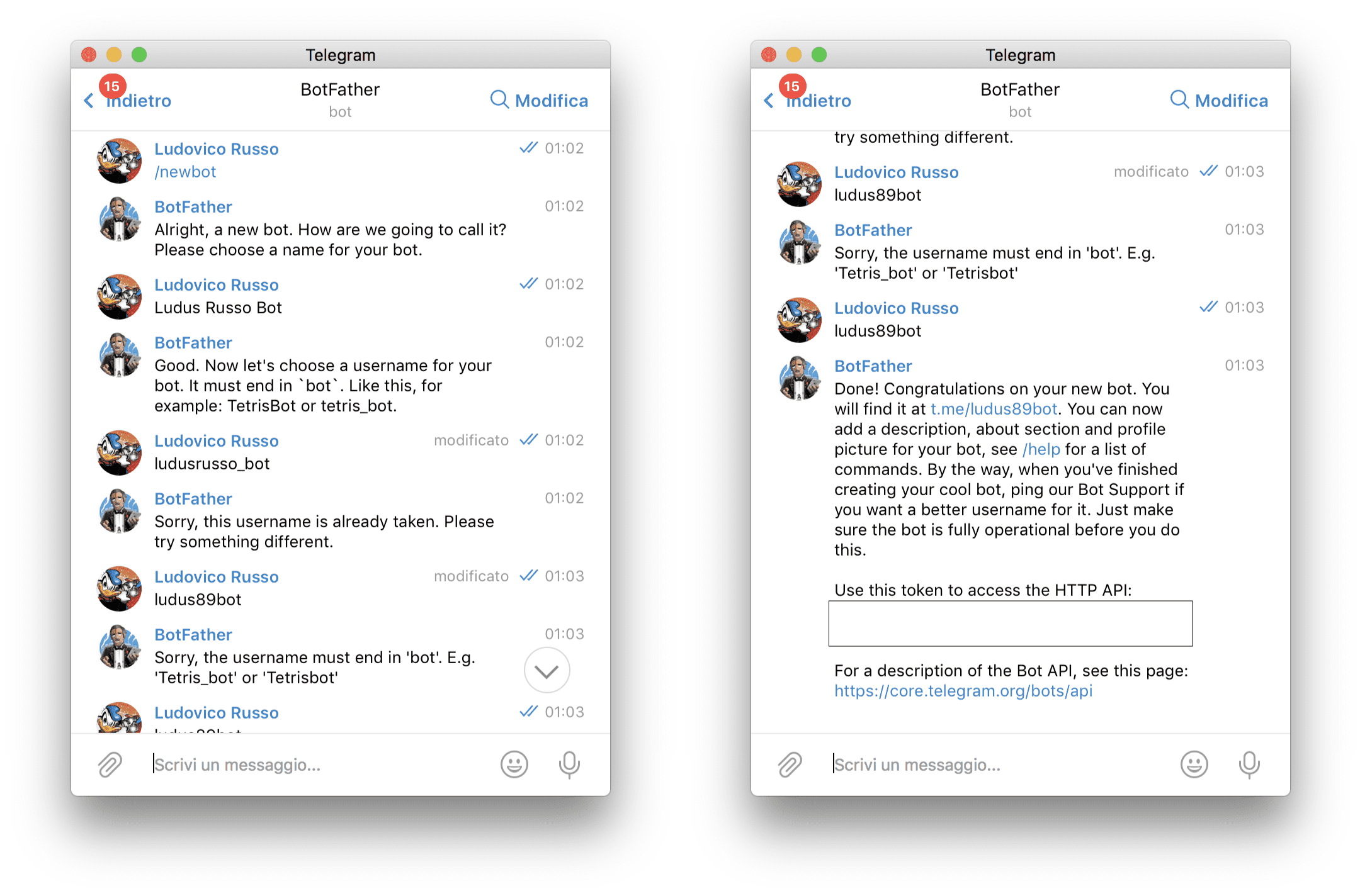 Questo post ha ricevuto un notevole successo, per questo motivo, ho deciso di scrivere altri tutorial sull'argomento telegram.