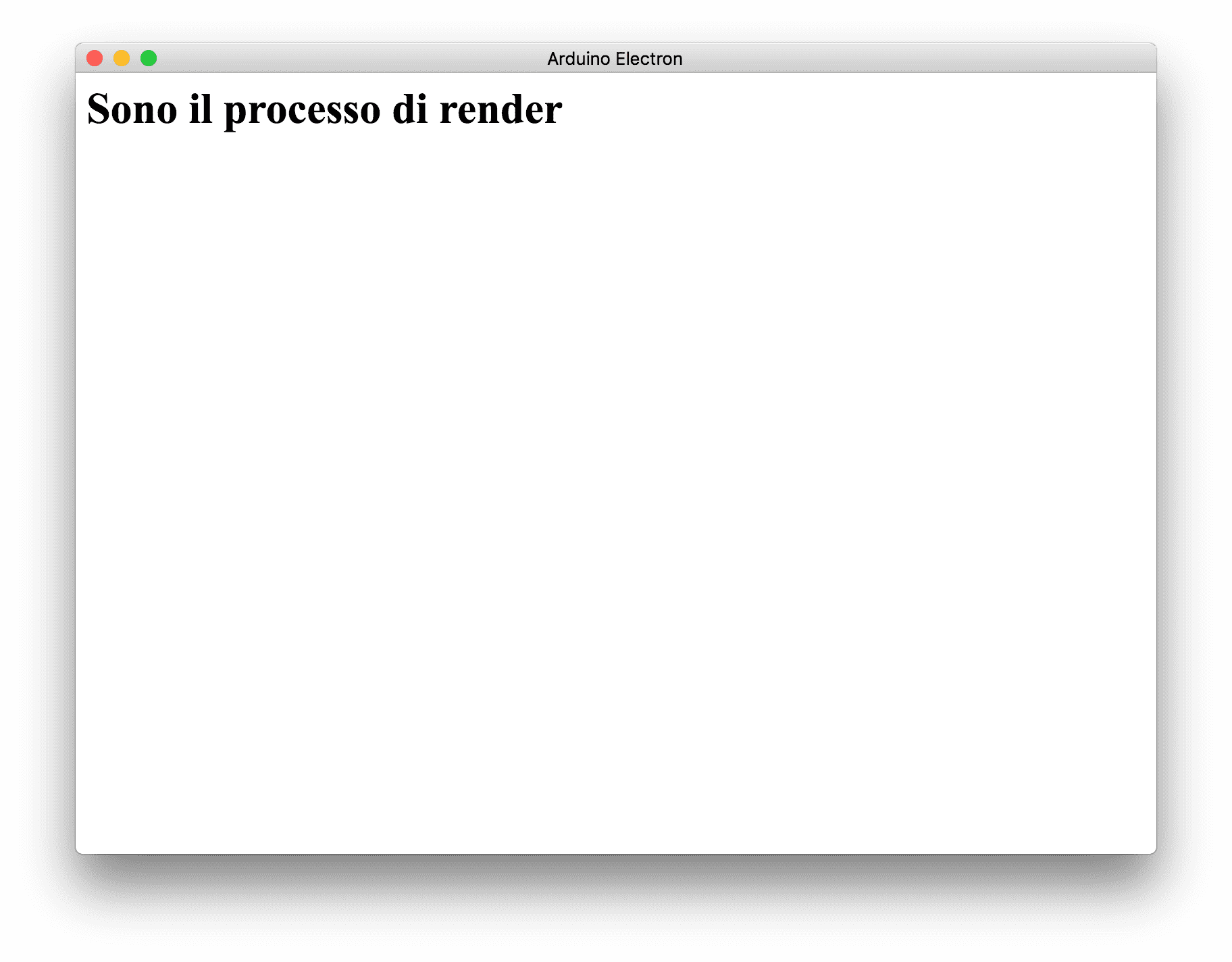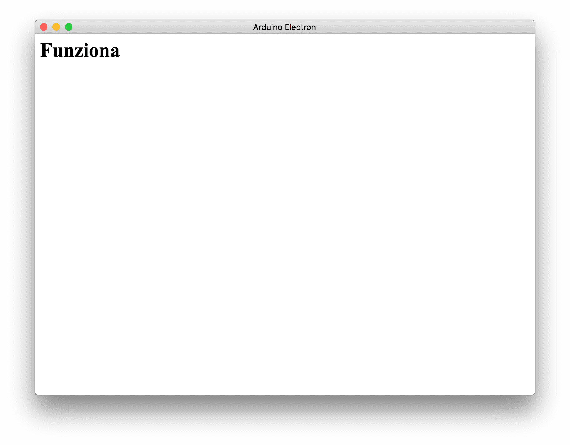 In questo file, abbiamo implementato il titolo (Arduino Electron) e stampiamo nella finestra, con tag h1 la stringa Funziona.