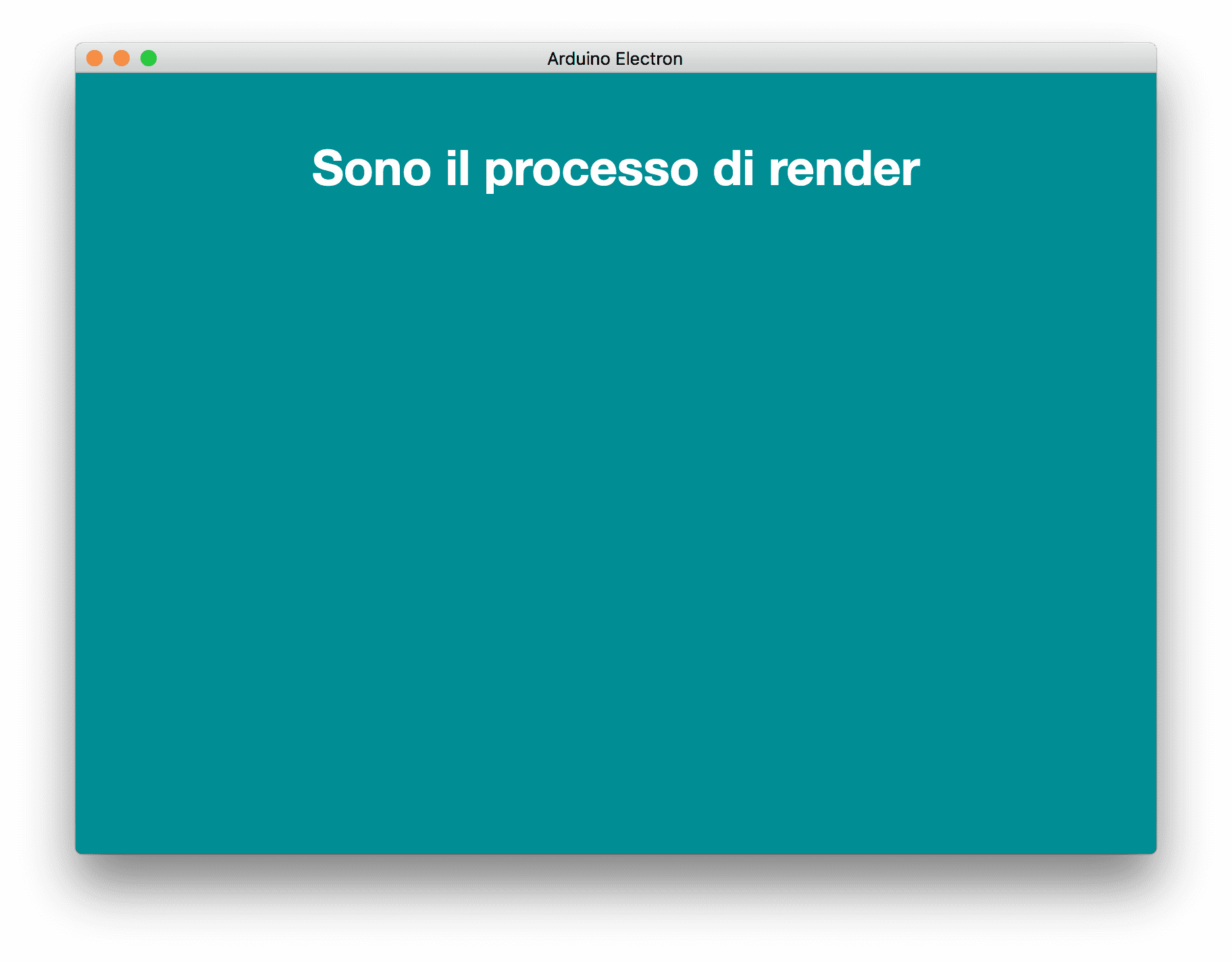 Una volta salvato il file, lanciamo il comando npm start per avviare l'applicazione. Se tutto va come deve, si aprirà la finestra che vedete in figura. Si noti il titolo e il suo contenuto!