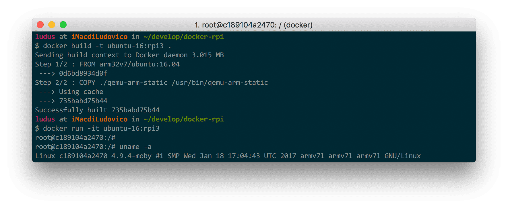 $ docker build -t ubuntu-16:rpi3 .$ docker run -it ubuntu-16:rpi3