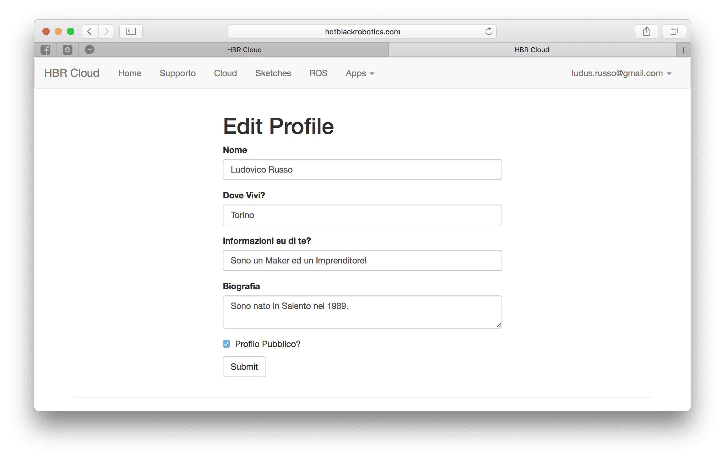 - Compilate i campi richiesti e ricordatevi di spuntare il flag Profilo Pubblico?. Quindi salvate.
