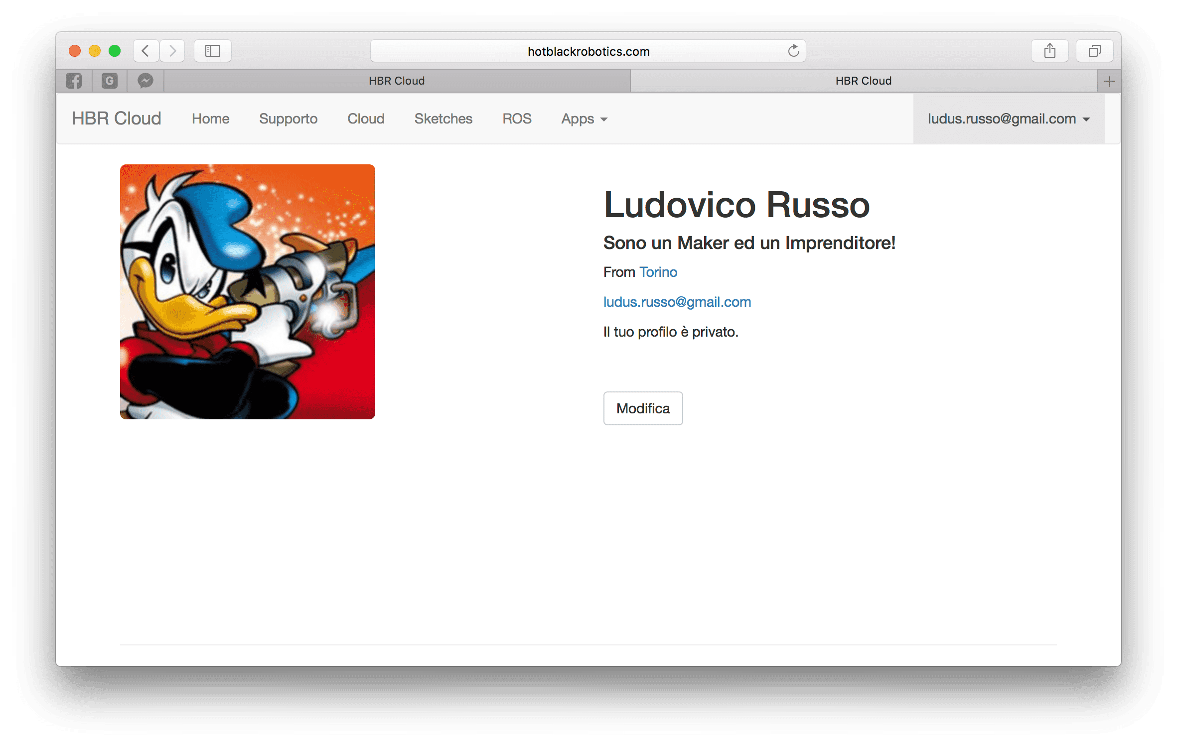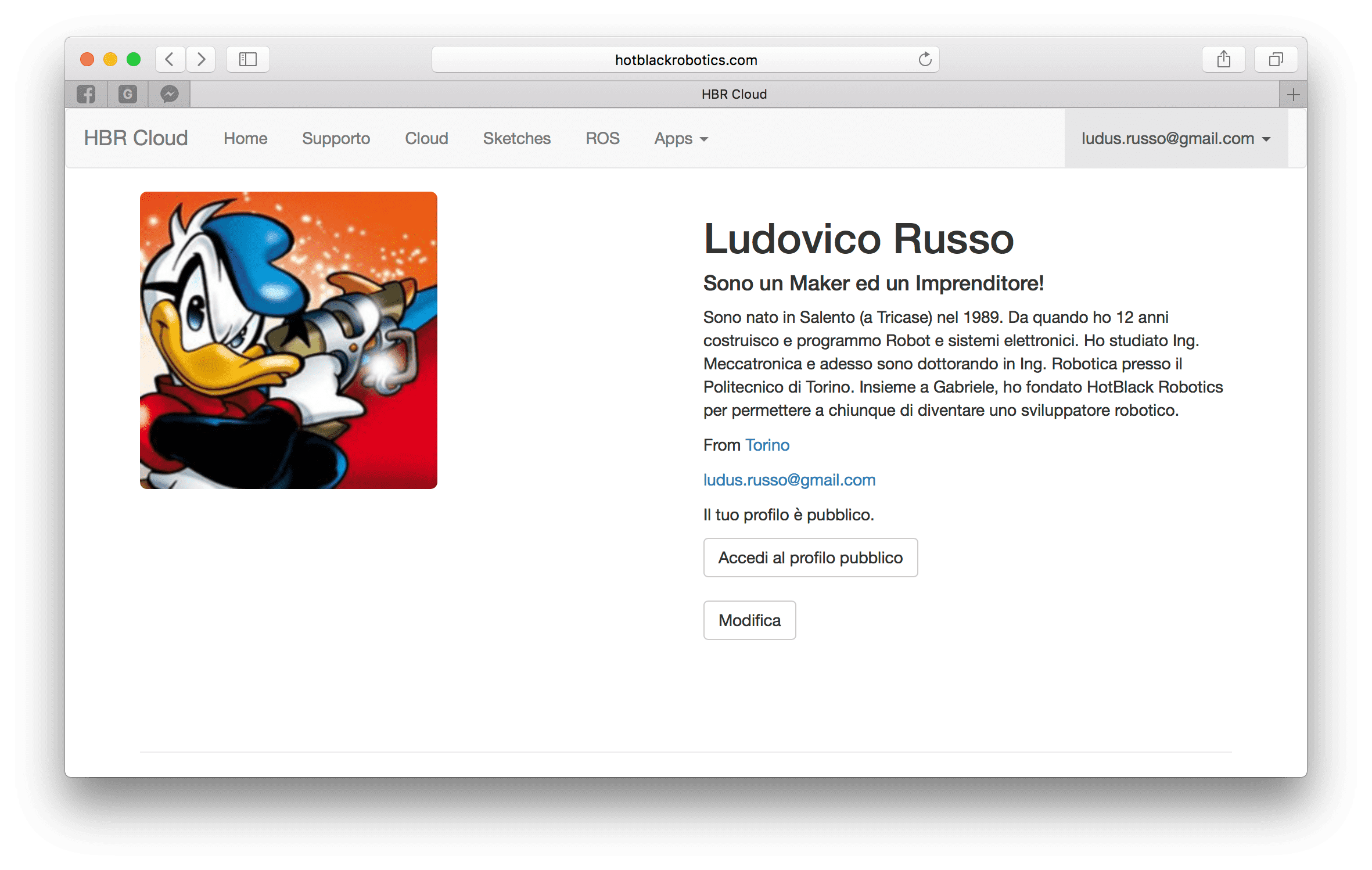 Noterete subito che lo sketch non è più modificabile. Se ora profate ad eccedere al vostro profilo pubblico, vedrete che il vostro sketch è presenta all'interno del vostro profilo.