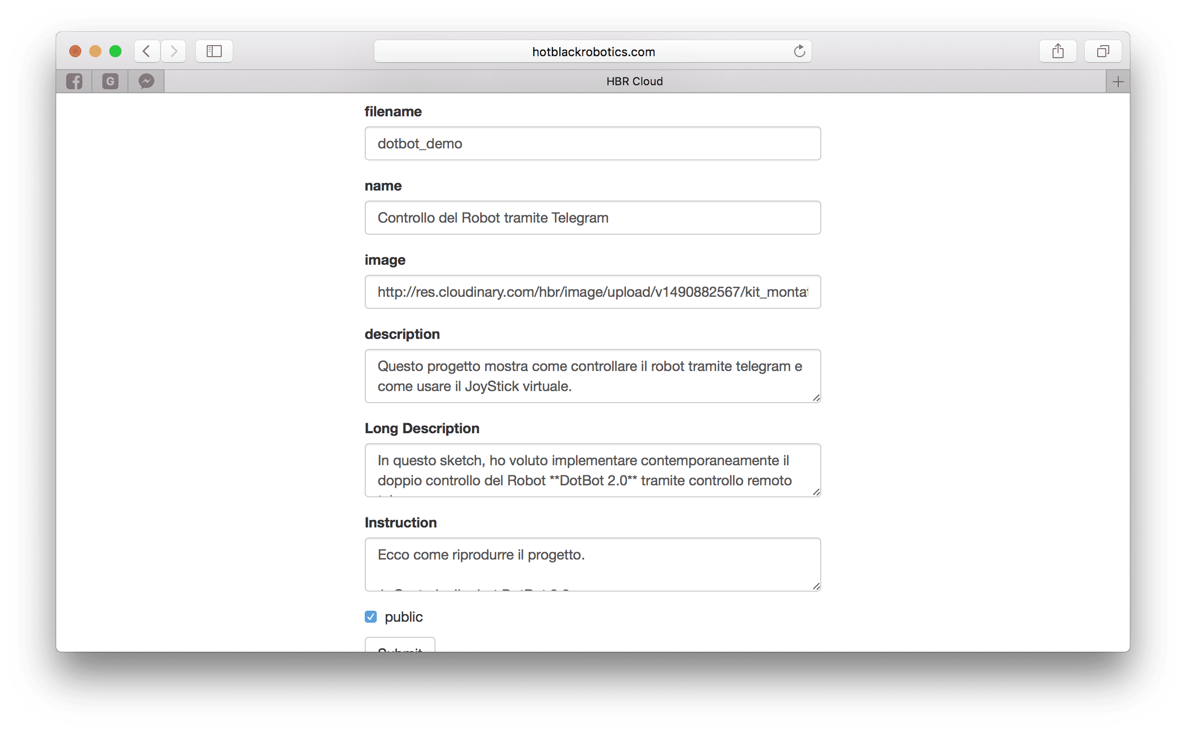 Una volta compilati i cambi, spuntiamo il flag is public e salviamo.