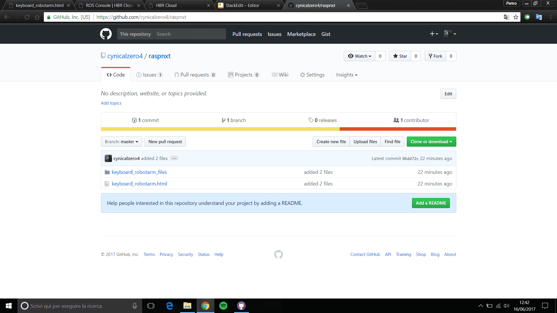 Ora che abbiamo connesso l'NXT al cloud procediamo a creare una webapp che ci permetterà di controllarlo attraverso la tastiera del nostro computer. Come prima cosa scaricate, premendo sul pulsante clone or download i file che potete trovare qui.