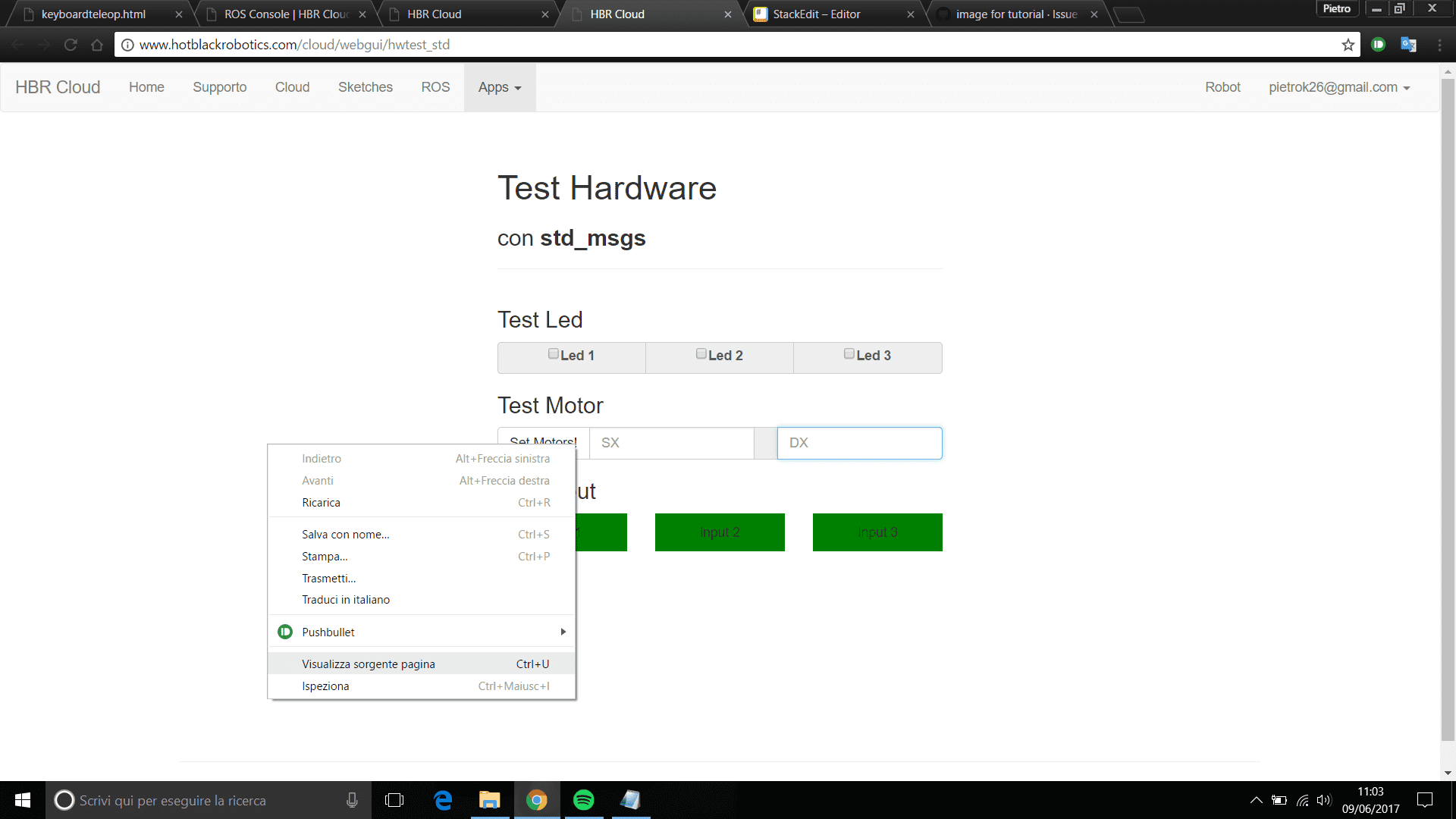 Dovete ora sostituire questa stringa con quella che identifica il vostro robot. Per trovarla dirigetevi sul sito di Hotblack al quale avete prima connesso la vostra scheda Raspberry, aprite una qualunque webapp e aprite la sorgente della pagina premendo il tasto destro del mouse