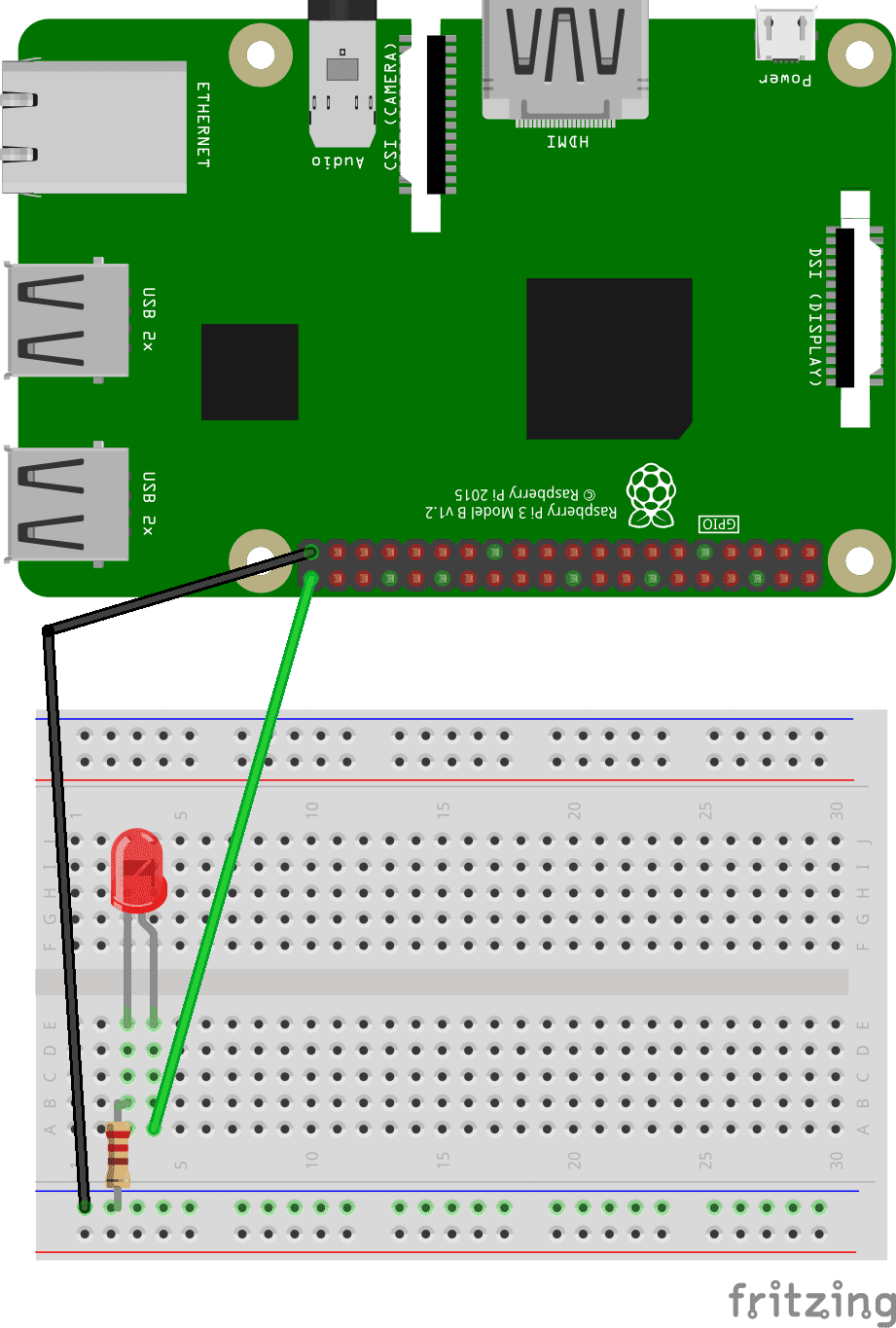 Ora configuriamo il LED di check. Questo LED vi sarà utilissimo per capire quando il robot ha finito la fase di reboot e si è connesso correttamente. Collegate il + del LED (il filo più lungo ) al GPIO 21 e il - lo mettete a terra (vedi figura sotto).