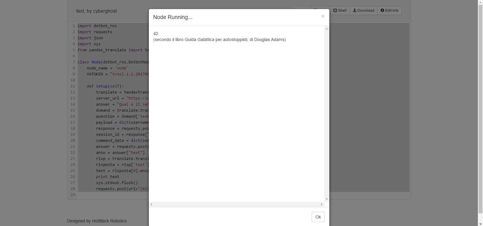 A questo punto, se il bot ha risposto correttamente, implementiamo la lingua italiana attraverso Yandex.Translate.