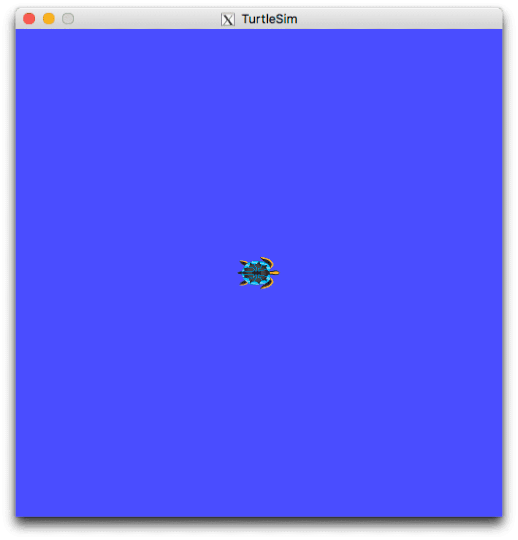 che aprirà una finestra grafica in cui viene visualizzata una tartaruga stilizzata in grafica 2D. In realtà la tartaruga è un robot ROS simulato, a cui possiamo mandare comandi di velocità tramite ROS