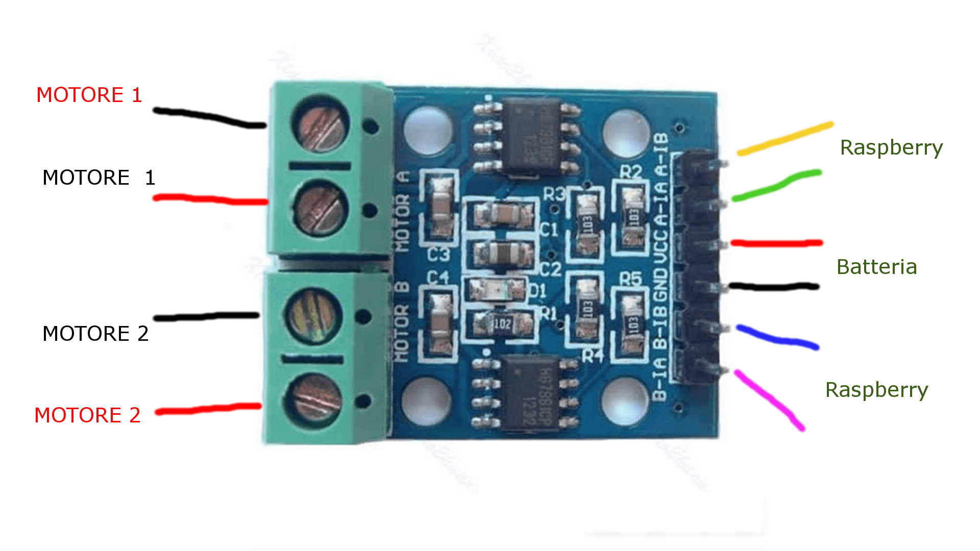 1 una batteria alcalina da 9 Volt (opzionale - per alimentare i motori in parallelo al Raspberry)