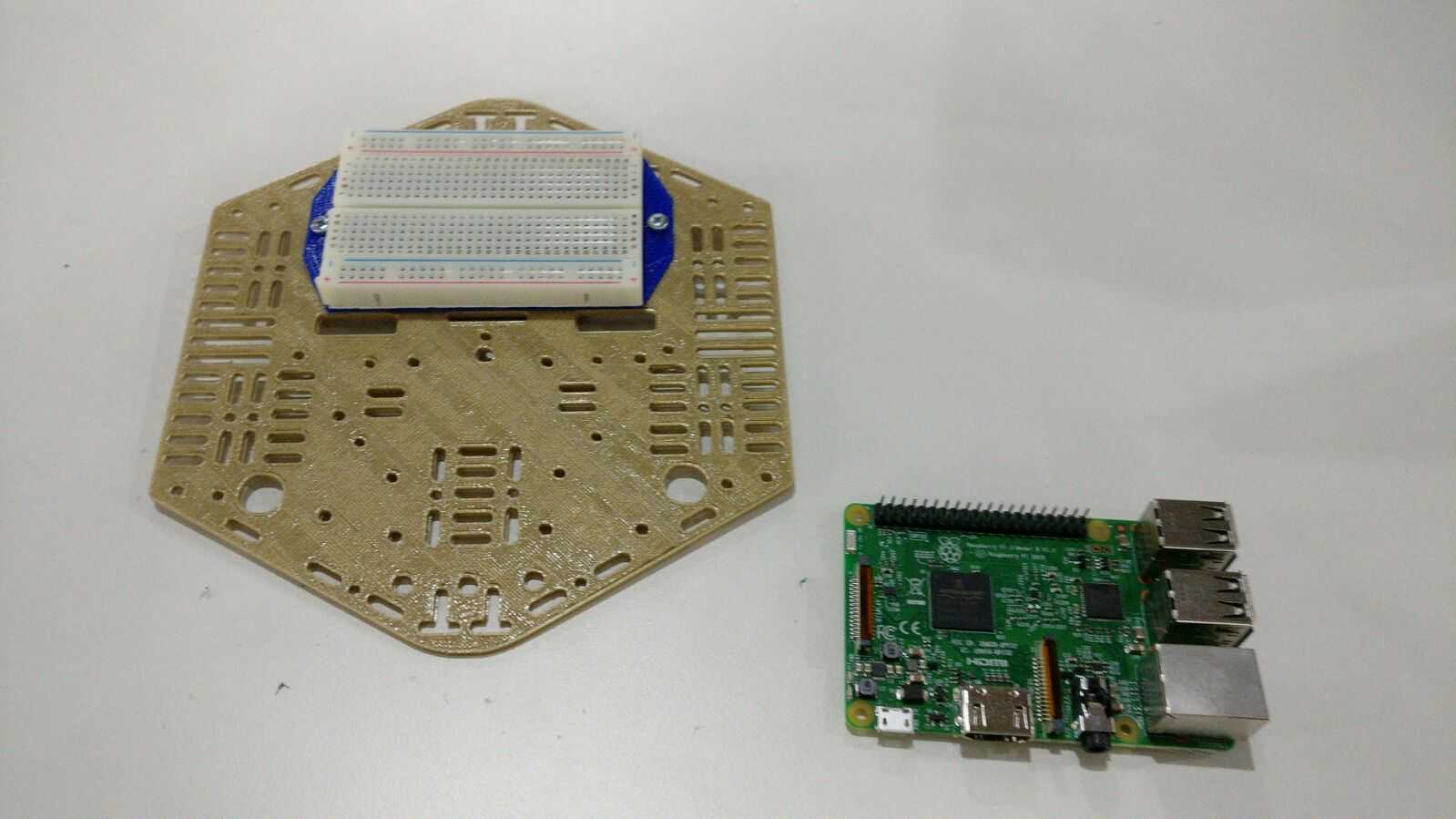 Ora avvitiamo il Raspberry e la parte superiore! E' più comodo se sotto il Raspberry mettete dello spessore, nel mio caso ho messo dei distanziali di plastica. ATTENZIONE state attenti a montare il Raspberry dalla parte giusta, ovvero con l'alimentazione che guarda verso l'esterno e non verso la bread board e mettete i supporti circolari (bulloni di supporto) sotto il Raspberry come in figura.